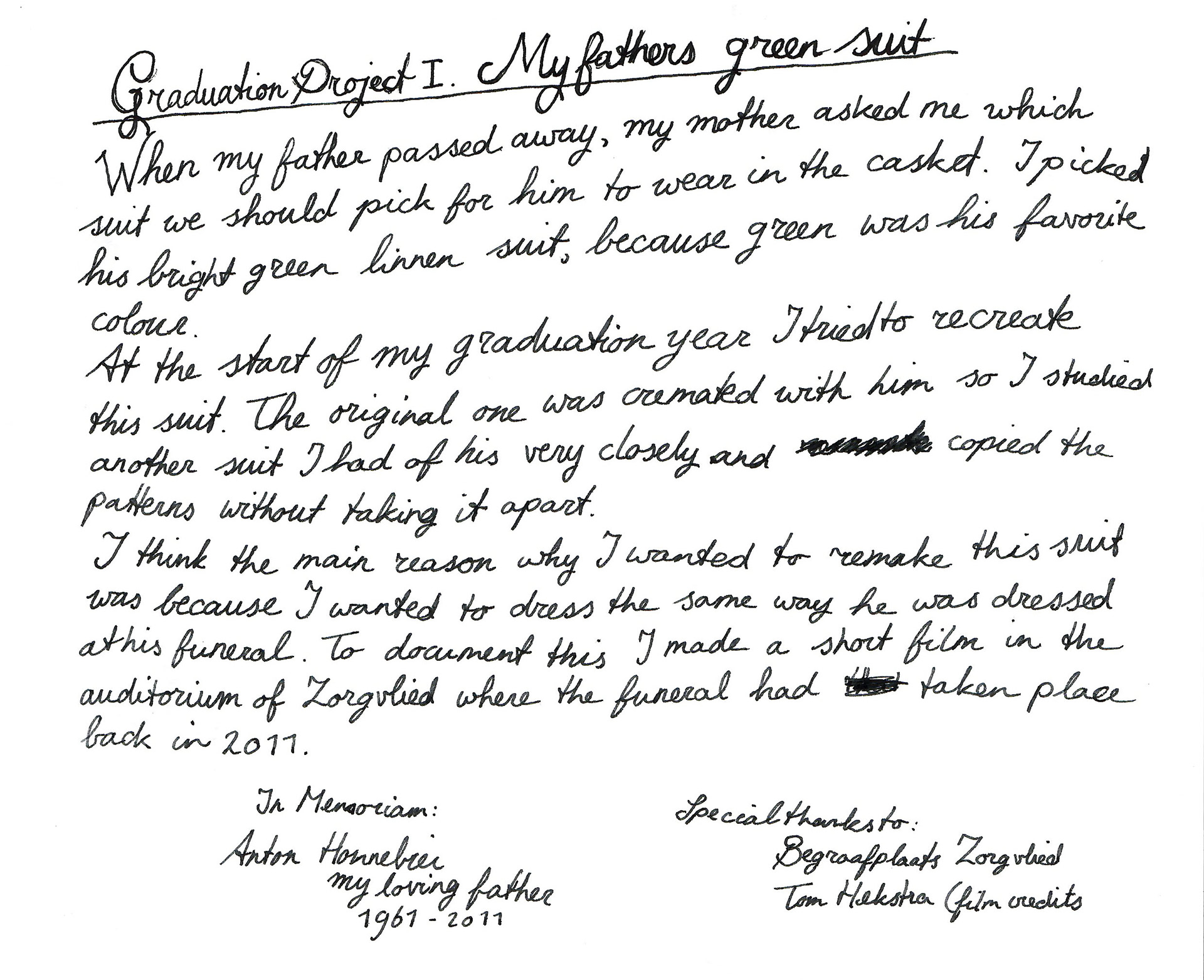 Graduation work II. Tears in the lining of my coat